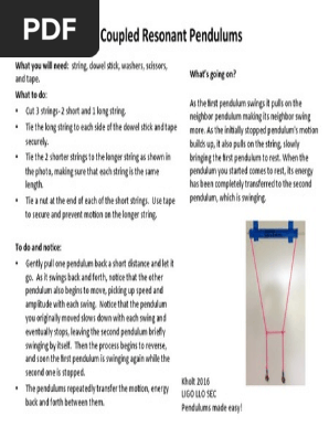Coupled Resonant Pendulums Mechanics Resonance Science Activity