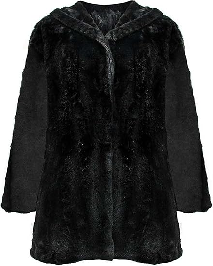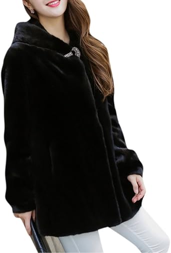Lanshifei Jackets Coats Black Hooded Faux Fur Winter Swing