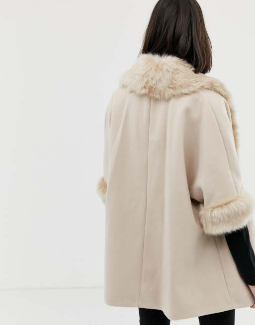 River Island Swing Coat With Faux Fur Collar In Stone Asos