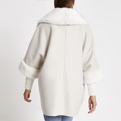 Cream Faux Fur Collar Swing Coat River Island