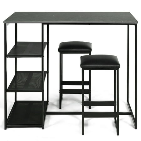 Gymax 3 Piece Pub Set Industrial Style Faux Marble Top Table And