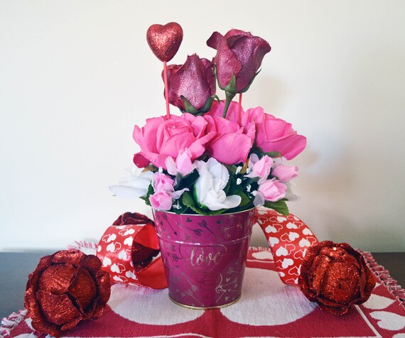 Table Decorations Pink Roses Wedding Table Flower Etsy