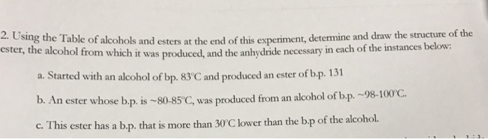 Solved Using The Table Of Alcohols And Esters At The End