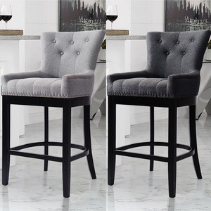 2 Pcs Grey Bar Stools Fabric Rest Chair Kitchen Breakfast Seat