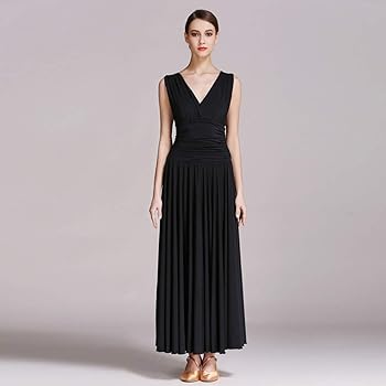 Amazon Com Zx Women S Ballroom Dance Costume V Neck Pleated Long