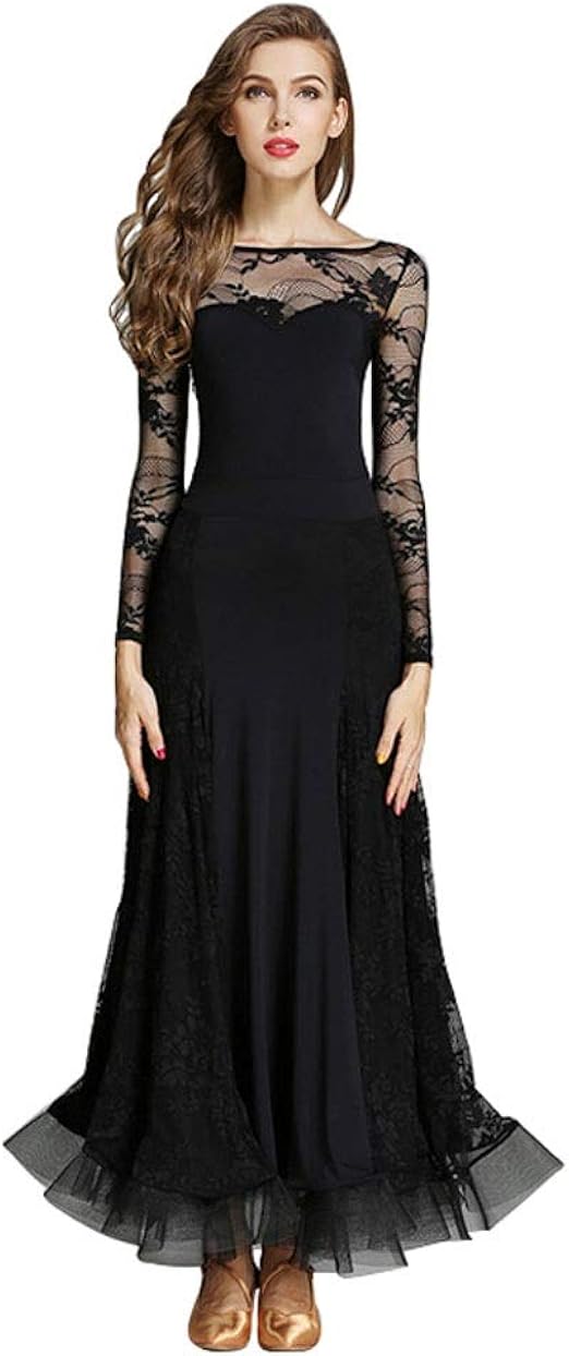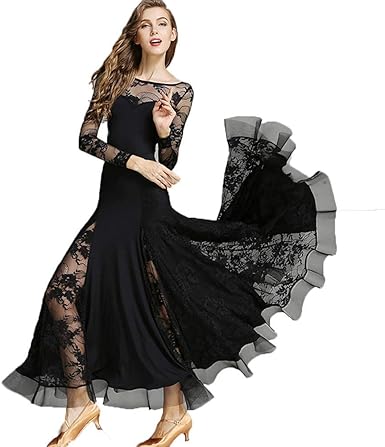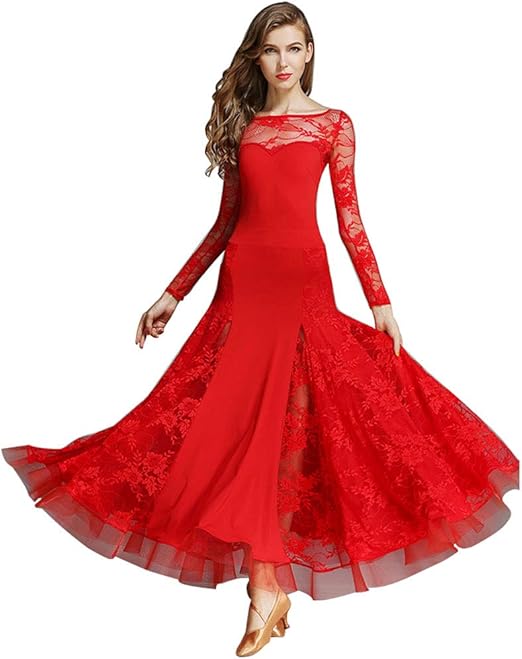 2018 New Ballroom Dance Dress Women Lace Long Sleeves Big Swing