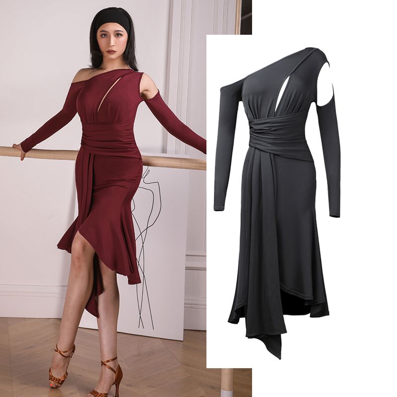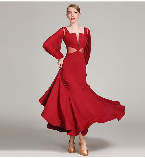 2020 Red Black Ballroom Dance Dress Women Sexy Long Sleeve