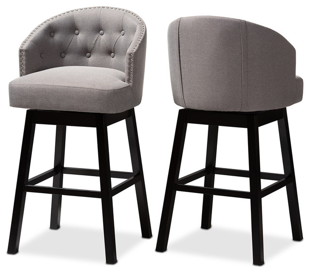 Bar Stool 30 Set Of 2 Tufted Back Dark Gray Fabric Nail Trim