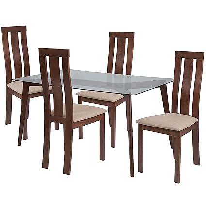 Amazon Com Flash Furniture Escalon 5 Piece Walnut Wood Dining