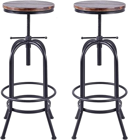 Amazon Com Set Of 2 Industrial Bar Stool Retro 28 34inch Swivel