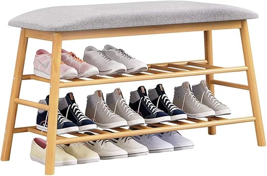 Amazon Com Freesa Modern Minimalist Style Strip Bamboo Stool Shoe