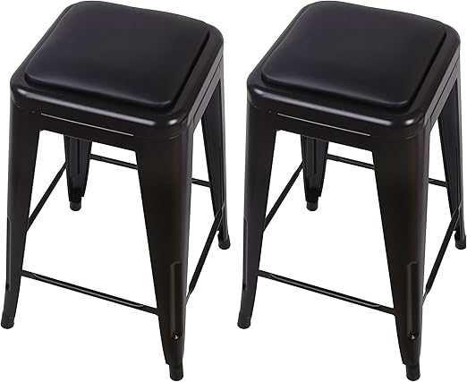 Amazon Com I Q Set Of 2 Counter Bar Stools 24 Inch Tufted Button