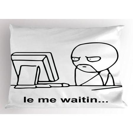 Humor Pillow Sham Stickman Meme Face Icon Looking At Computer
