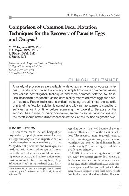 Fecal Flotation Studies A Comparison Of Fecal Examination