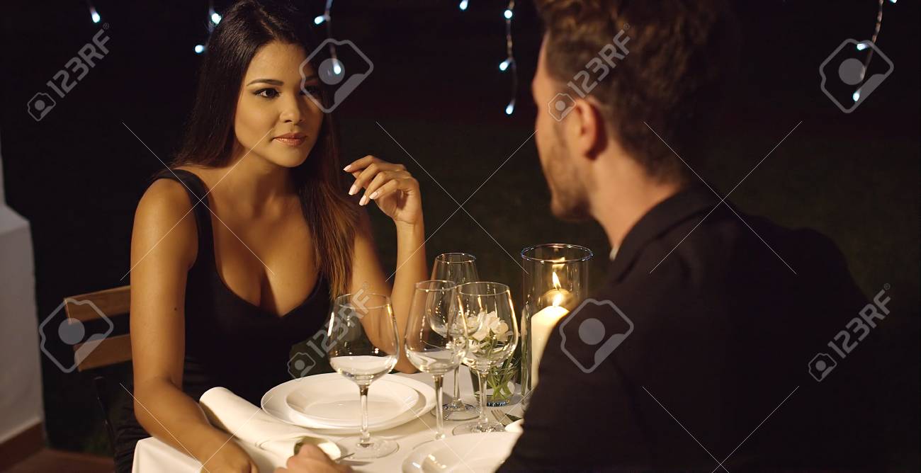 Beautiful Long Haired Woman Has Dinner With Man At Fancy