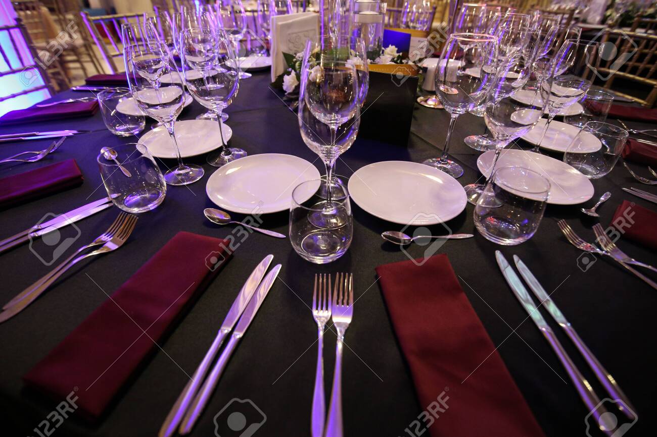 Elegant Table Setting At Fancy Restaurant For Wedding Buy This