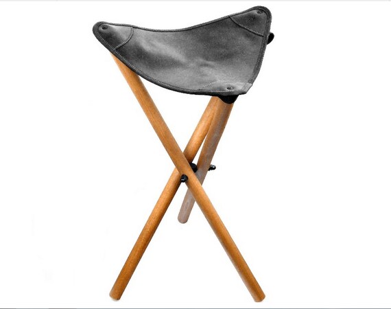 Retro Wood Leather Folding Seat Huntingfishing Stool Vintage Etsy