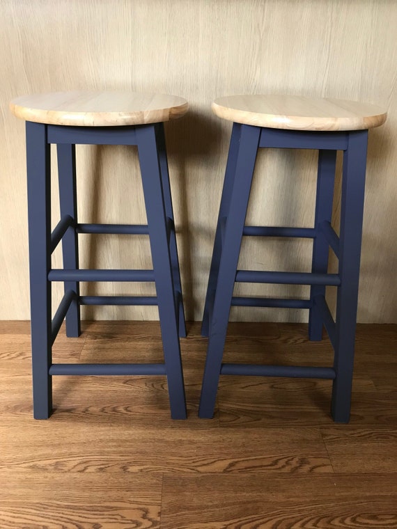 2 X Hand Painted Wooden Bar Stools Navy Etsy