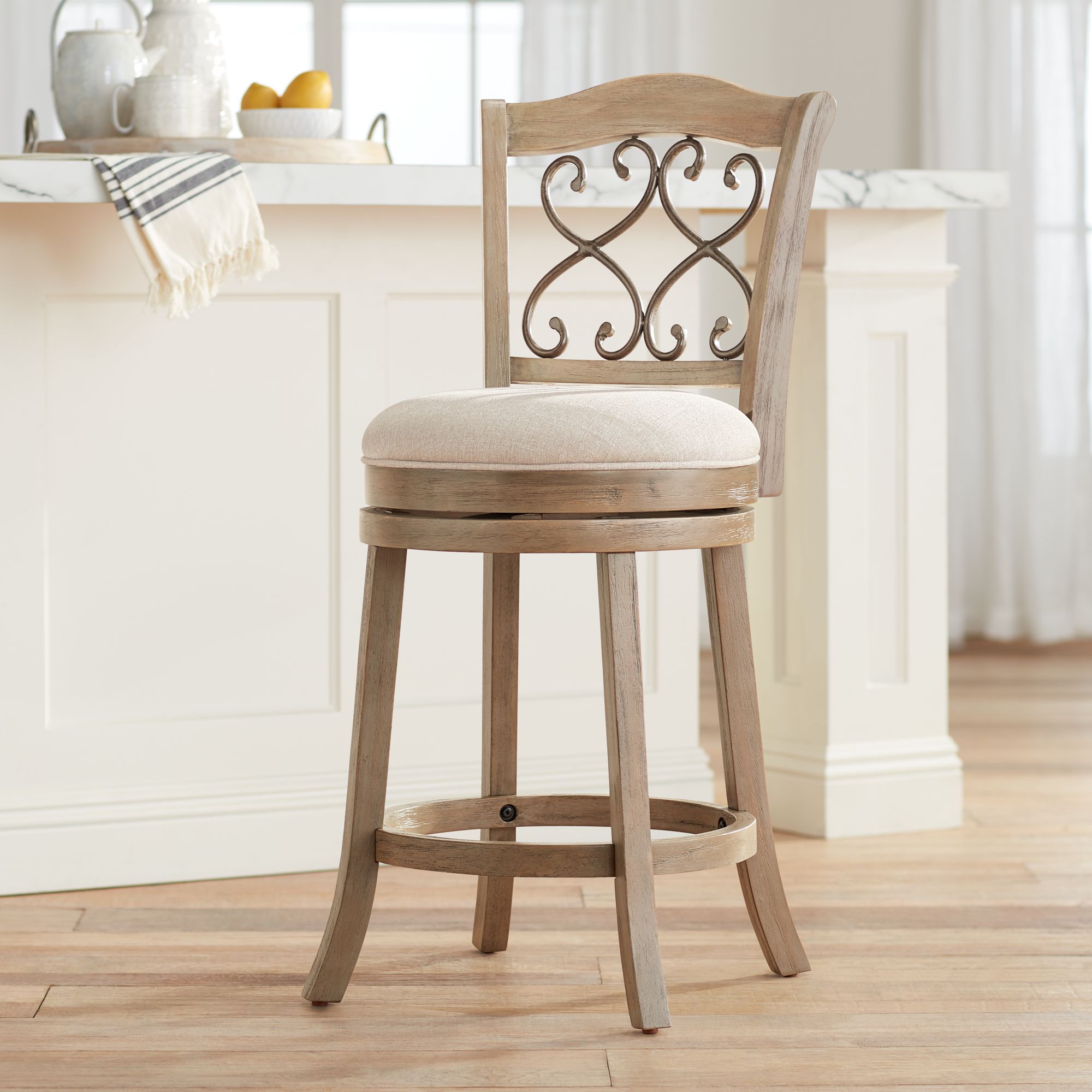 Simple Living French Country Gray Rubberwood Fabric 30 Swivel Bar