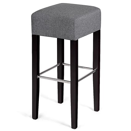 Amazon Com Kchex 1 Pc Backless Bar Stool Fabric Seat Rubber Wood