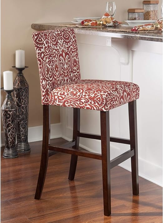 Amazon Com Damask Print Fabric Upholstered Bar Stool Off White