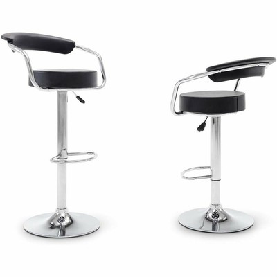 Set Of 2 Modern Bar Stools With Black Faux Leather Round Seat With