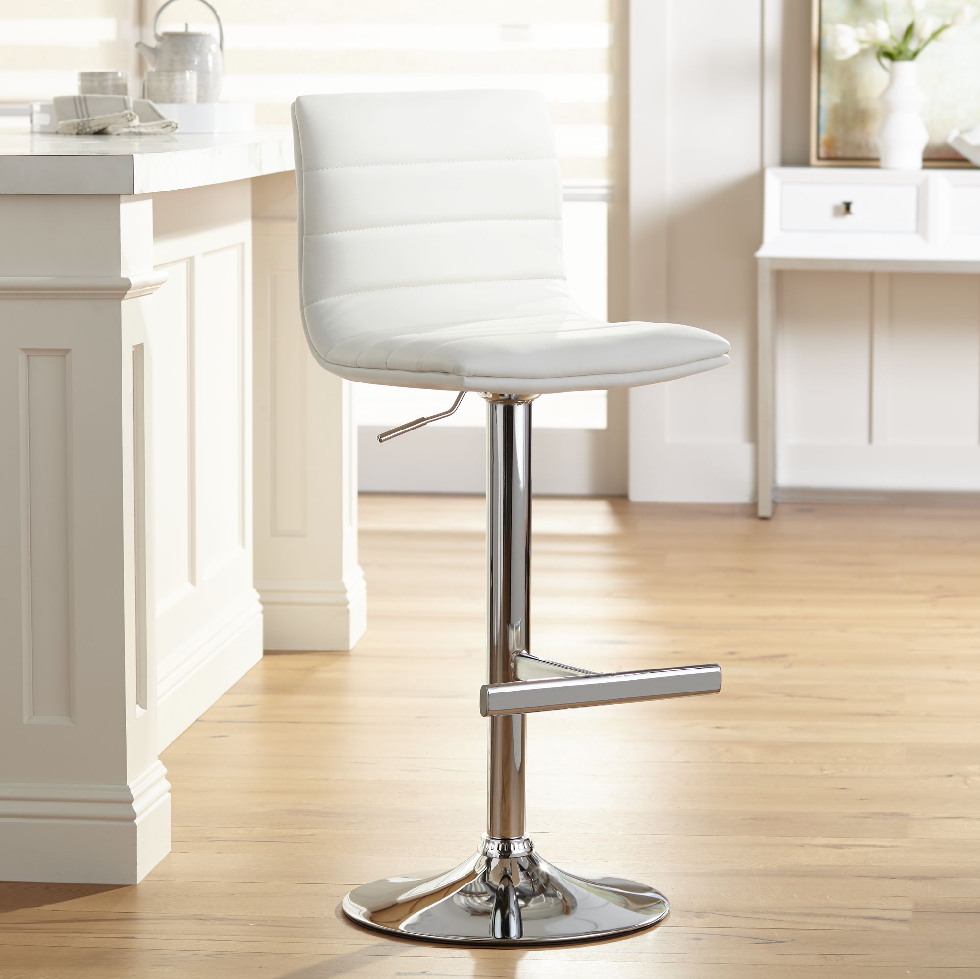 Motivo White Faux Leather Swivel Seat Adjustable Barstool 6p829