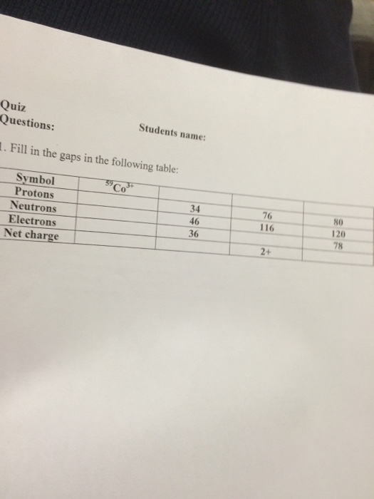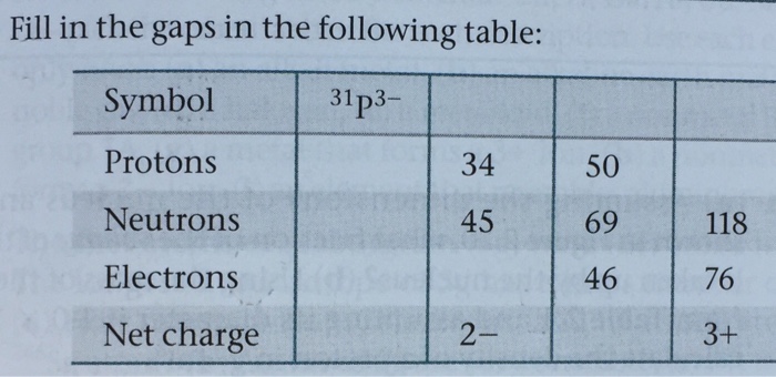 Fill In The Gaps In The Following Tables Yeah Chemistry