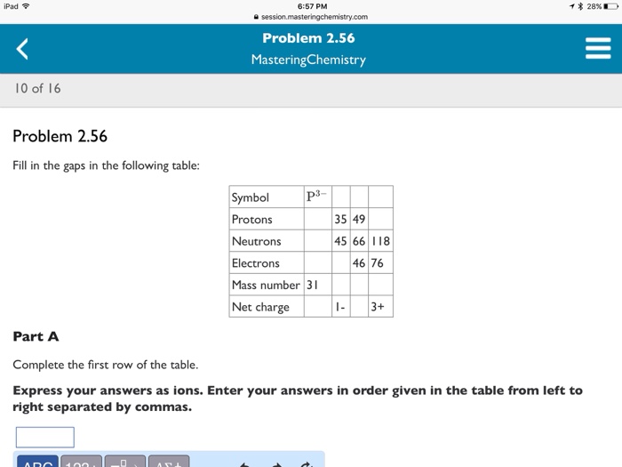 Oneclass Ipada 9 15 Pm Session Problem 2 56 Masteringchemistry