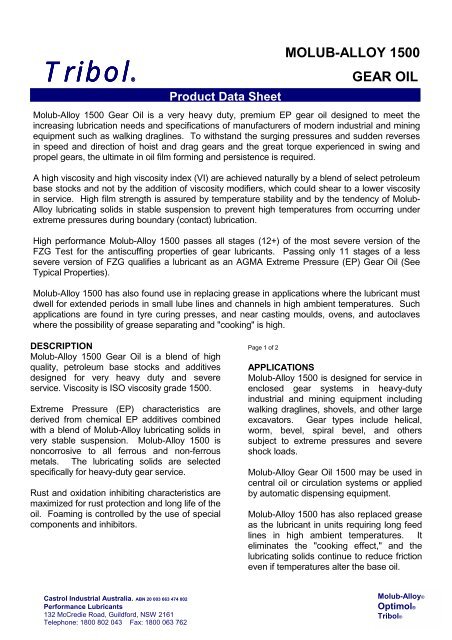 Molub Alloy 1500 Tribol Gear Oil Castrol Tds