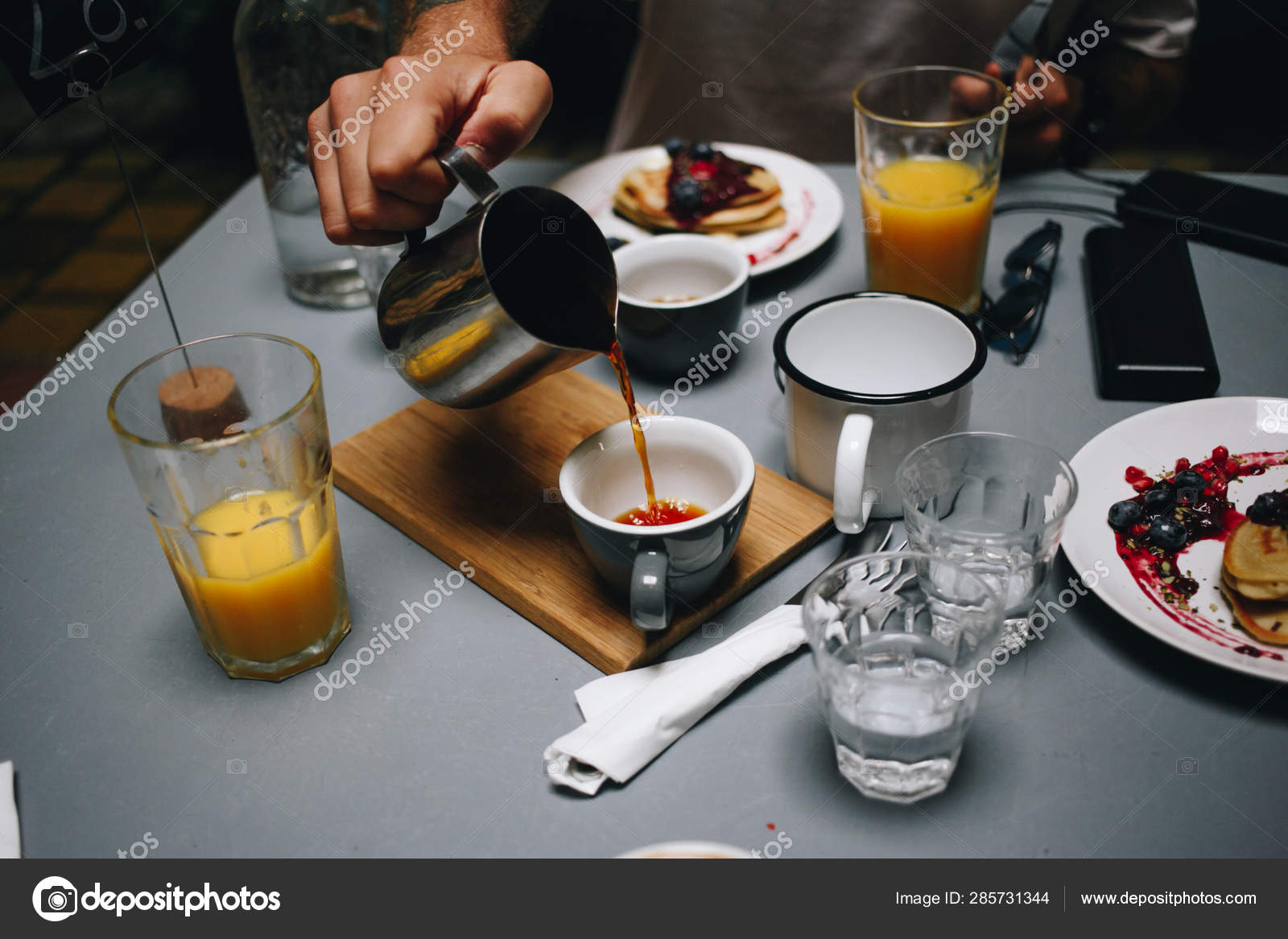 Fancy Trendy Brunch Or Breakfast Table In Cafe Stock Photo Image