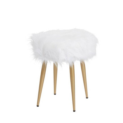 White Faux Fur Stool Metallic Gold Wood Legs White Fake Fur