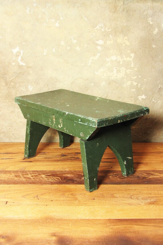 Vintage Green Farmhouse Step Stool Wood Milking Stool Wooden Etsy