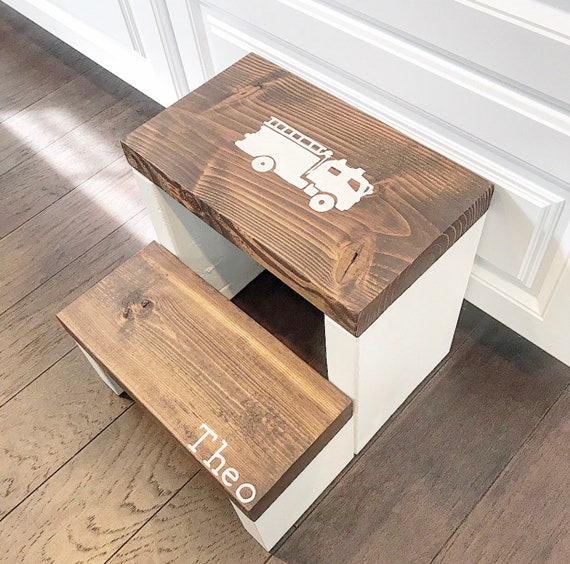 Personalized Rustic Kids Step Stool With Graphic Toddler Step Etsy