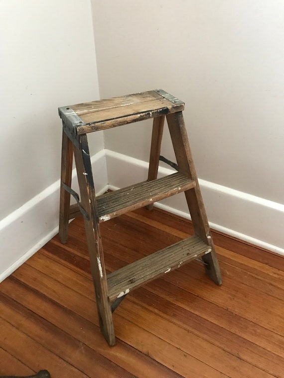 Vintage Farmhouse Ladder Wooden Step Ladder Vintage Ladder Etsy