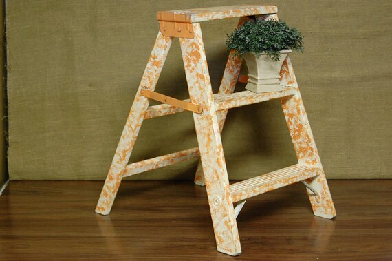 Etsy Storage Wooden Ladders Vintage Paint Splatters Included