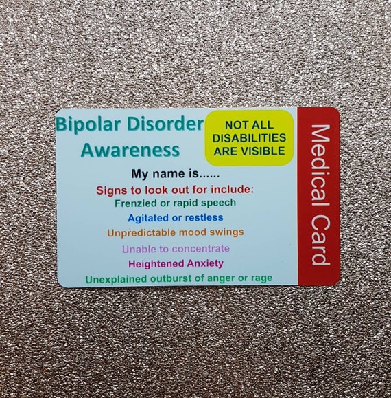 Bipolar Awareness Medical Pvc Card Personalised Disability Etsy