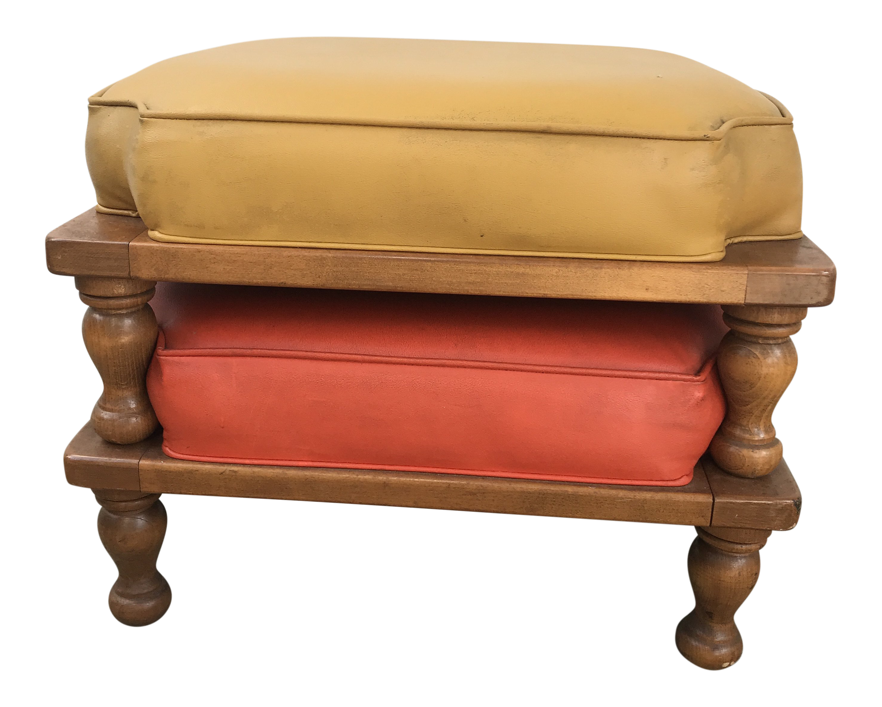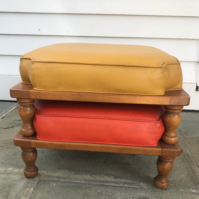 Vtg Ethan Allen Stacking Stools Ottoman Foot Rest Orange Mid