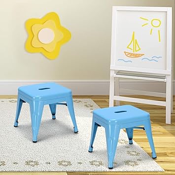 Amazon Com Costzon Kids Metal Stool Industrial Stackable Square