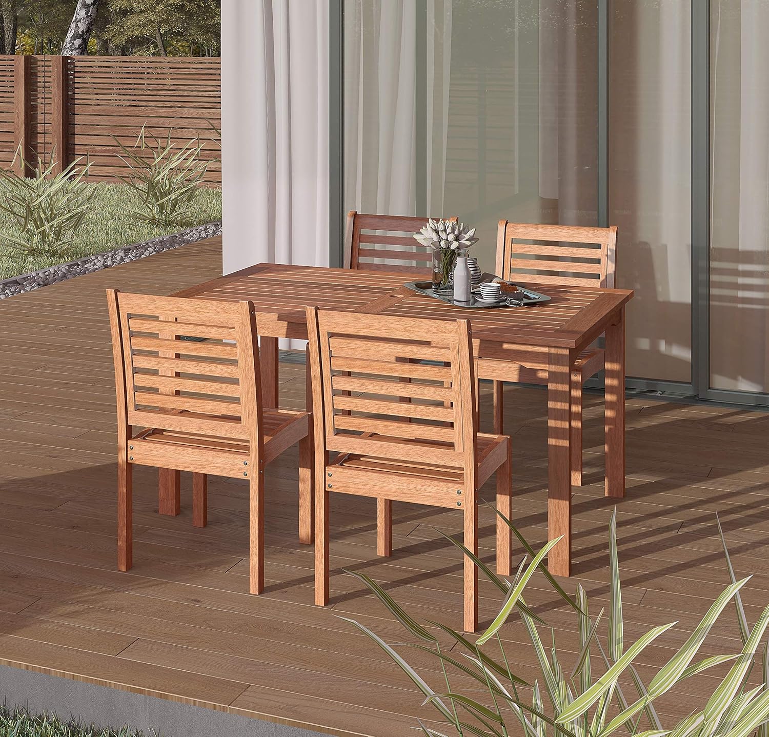 Sturdy Outdoor Patio Dining Set Eucalyptus Wood Table 4 Chairs