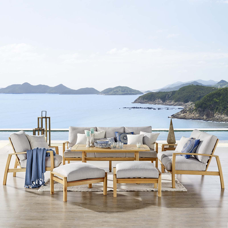 Modway Orlean Outdoor Patio Eucalyptus Wood Ottoman Modish Store