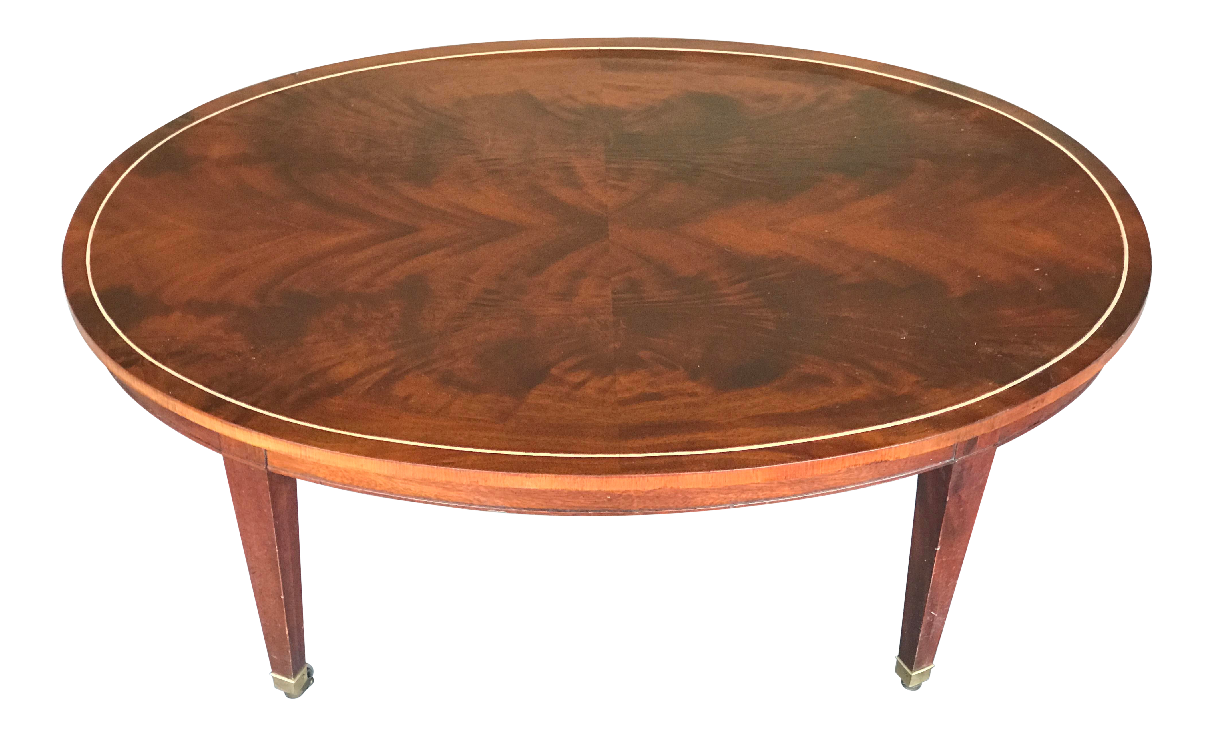 Mid Century Modern Baker Flame Matched Oval Mahogany Coffee Table