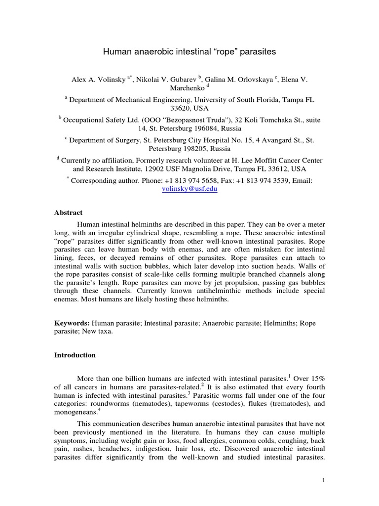 Human Anaerobic Intestinal Rope Parasites Pages 1 6 Text