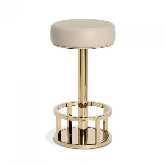 Cuban Bar Stool In Cream Faux Leather And Stainless Steel Base
