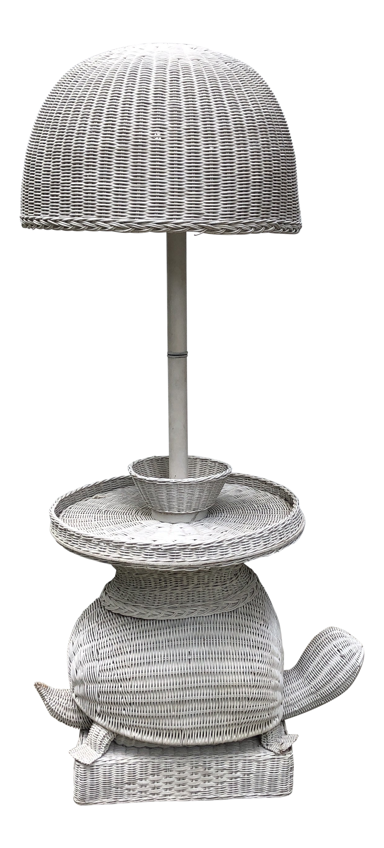 Palm Beach Style Wicker Turtle Floor Lamp With Small Table And