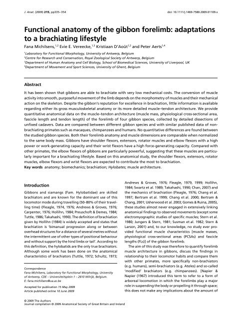 Functional Anatomy Of The Gibbon Forelimb Wiley Online Library