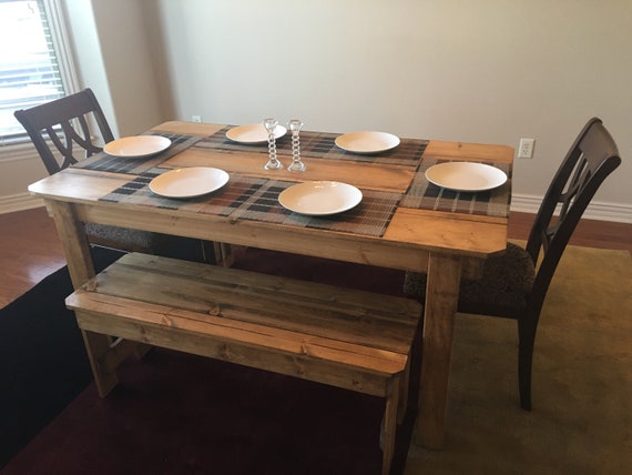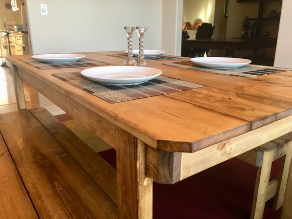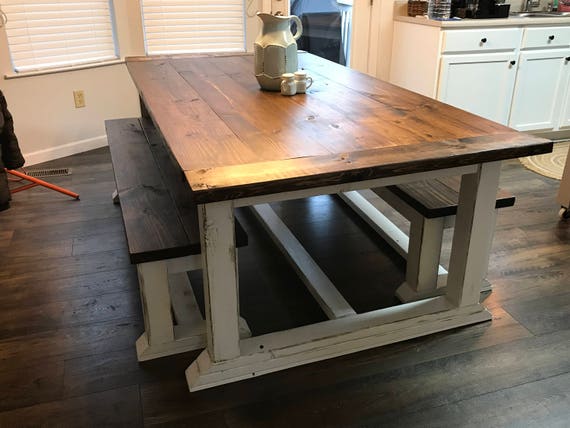 Farmhouse Style Dining Table And Two Benches Indoor Or Etsy