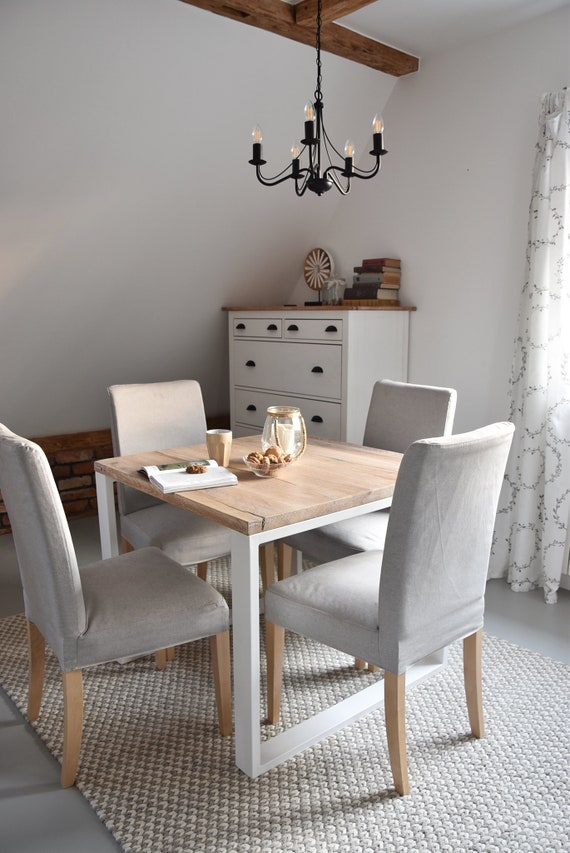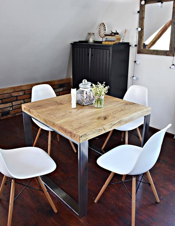 Hand Crafted 4 Seater Farmhouse Style Modern Oak Wood Silver Etsy