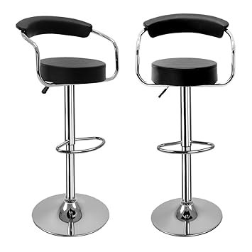 Set Of 2 Bar Stool Swivel Adjustable Pu Leather Seat Dining Pub