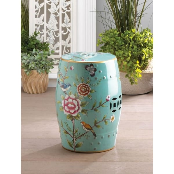 Enjoy free shipping on most stuff even big stuff. Floral garden decorative stool soft green background is the perfect stage for blue birds and blooming flowers to shine it is made from ceramic. Tropical themed garden motif for use as a stool side table or patio accessory crafted from fiberglass suitable for indoor and.